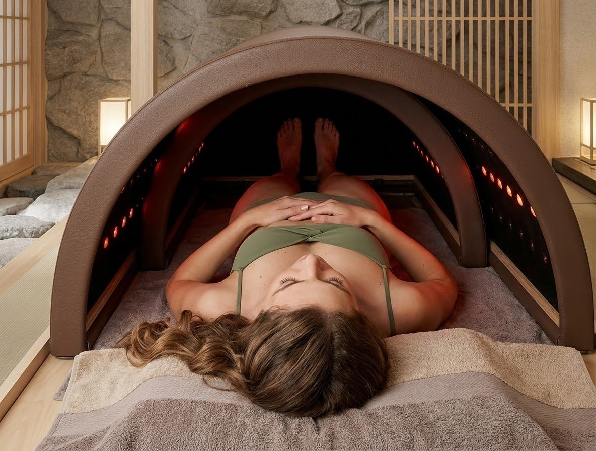 Découvrez le sauna dôme infrarouge ESTHE PRO FACTORY, la nouvelle génération de soins thermiques et énergétiques. Ce sauna portable allie chaleur infrarouge lointaine, thérapie par lumière rouge (660 nm) et pierres naturelles de tourmaline et germanium pour offrir une expérience complète de détente, détoxification et régénération.
